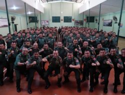 Setibanya di Aula Antasena, Pangdam Hasanuddin disambut dengan nyanyian yel-yel dengan semangat membara oleh personel Bekangdam.