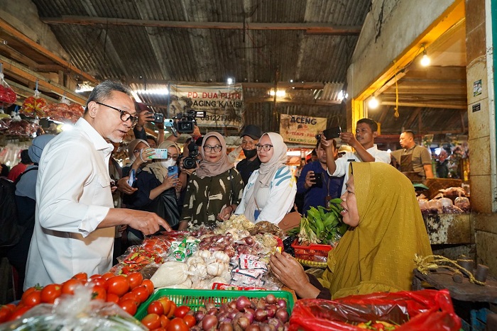Menteri Perdagangan Zulkifli Hasan meninjau stok bahan kebutuhan bahan pokok di Pasar Tanjungsari Sumedang (13/12/2023). (@ZUL_Hasan)