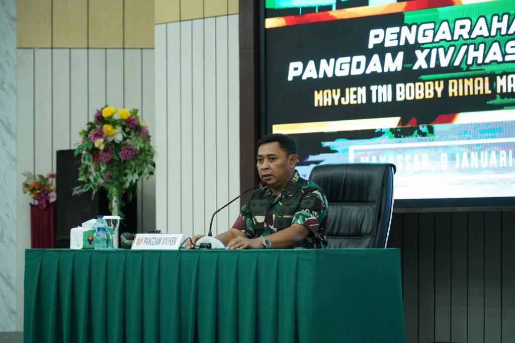 INFOKINI.ID, MAKASSAR– Pangdam XIV/Hasanuddin Mayjen TNI Bobby Rinal Makmun menyampaikan beberapa penekanan dalam rangka menjunjung tinggi netralitas TNI pada pesta demokrasi Pemilu 2024.halnini disampaikan orang nomor satu di Kodam XIV/Hsn ini saat pengarahan kepada para Pejabat Utama (PJU) Kodam, Komandan Satuan (Dansat) dan Kepala Badan Pelaksana Kodam (Kabalakdam), serta sejumlah personel militer dan ASN Kodam XIV/Hasanuddin, Selasa (9/1/2023) di Balai Pertemuan Hasanuddin (BPH) Makodam.