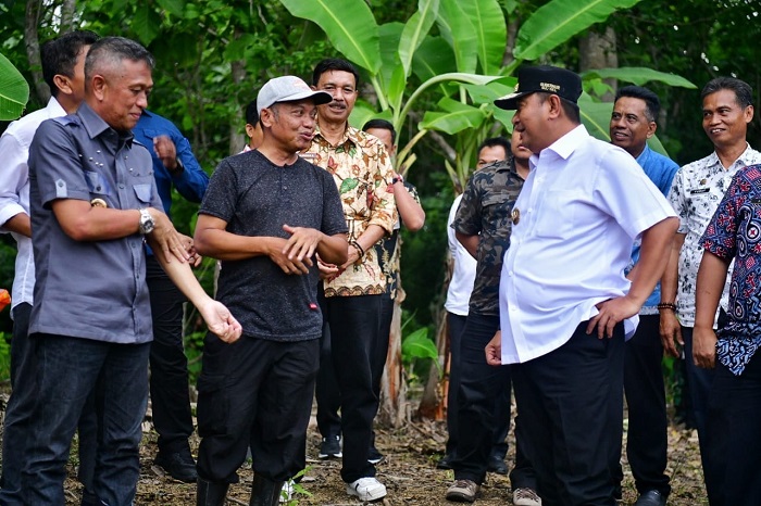 Untuk menuju ke lahannya, Pj Gubernur Sulsel bersama Pj Bupati Bone, Islamuddin, terlebih dahulu harus melalui jalan tani dan jalan tanah sejauh 300 meter. Menaiki dompeng dan melewati jalan dari bambu.