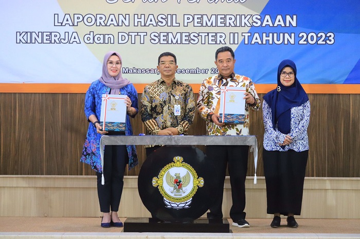 Penyerahan LHP itu diserahkan langsung oleh kepala BPK Perwakilan Sulawesi Selatan, Amin Adab Bangun, hadir dalam penyerahan itu Penjabat Gubernur Sulsel, Bahtiar Baharuddin. Dan terlihat hadir sejumlah OPD dari Pemprov Sulsel.