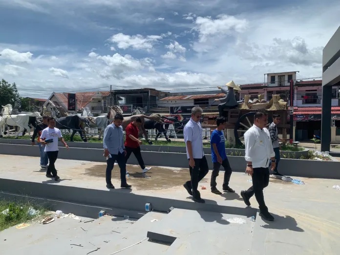 INFOKINI.ID, SINJAI – Pj Bupati Sinjai, TR Fahsul Falah bersama Kepala Disperindag Sinjai, Muh Saleh meninjau kembali alun-alun di Jalan Tondong, Kecamatan Sinjai Utara, Jumat (19/1/2024) siang.
