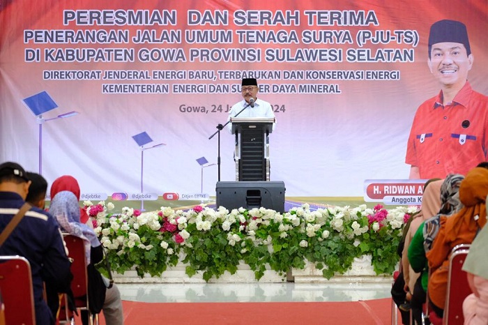 Sementara itu, Kasubdit Pengawasan Pembangunan Infrastruktur, Energi Baru, Terbarukan, dan Konservasi Energi Kementerian ESDM, Agung Feinuddin mengatakan, Kementerian ESDM melalui Komisi VII DPR RI, Ridwan Andi Wittiri meminta daerah berkomitmen untuk menjalankan berbagai program kegiatan yang bermanfaat bagi masyarakat utamanya pemanfaatan energi surya untuk penerangan jalan melalui program pemasangan PJU-TS di Sulawesi Selatan khususnya di Kabupaten Gowa sebagai solusi efisiensi tenaga listrik untuk penerangan yang difokuskan pada penerangan jalan pedesaan yang sulit dijangkau oleh jaringan PLN.
