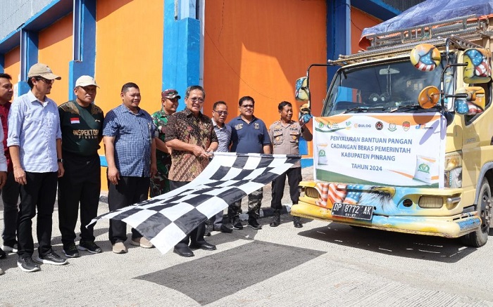 INFOKINI.ID, PINRANG – Wakil Bupati Pinrang H Alimin berkesempatan melepas penyaluran bantuan pangan cadangan beras Pemerintah Kabupaten Pinrang di Kantor Cabang Pembantu Badan Urusan Logistik Pinrang, Jum’at (2/2/2024).