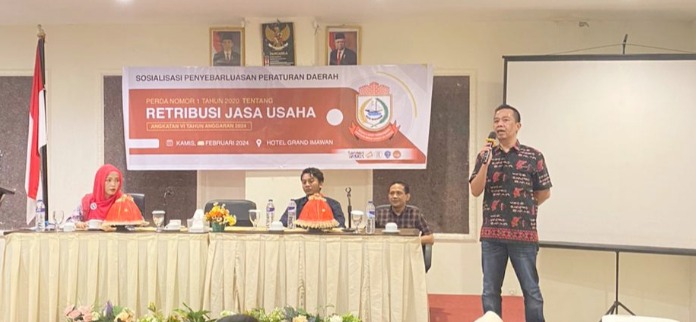 INFOKINI.ID, MAKASSAR– Anggota DPRD Kota Makassar, Kasrudi menggelar Sosialisasi Peraturan Daerah (Perda) Nomor 1 Tahun 2022 tentang Perubahan atas Perda Nomor 13 Tahun 2011 tentang Retribusi Jasa Usaha, di Hotel Grand Imawan, Jl Pengayoman, Kamis (8/2/2024).