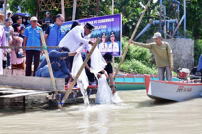 Usai menebar benih secara simbolis, Pj Gubernur Sulsel juga memberikan bantuan bibit ikan nila kepada ratusan nelayan yang berasal dari Wajo, Soppeng dan Sidrap.