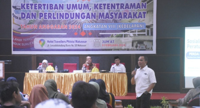 Hal itu disampaikannya saat menggelar fungsi pengawasan dalam rangka penyeberluasan peraturan daerah (Perda) Nomor 7 Tahun 2021 tentang Ketertiban Umum, Ketenteraman dan Perlindungan Masyarakat, di Hotel Travelers Phinisi, Jumat (9/2/2024).
