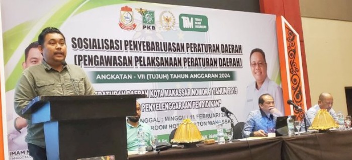 INFOKINI.ID, MAKASSAR– Anggota DPRD Kota Makassar, Imam Musakkar menggelar fungsi pengawasan dalam rangka penyeberluasan peraturan daerah (Perda) Nomor 1 Tahun 2019 terkait Penyelenggaraan Pendidikan, di Hotel Dalton, Jl Perintis Kemerdekaan, Minggu (11/2/2024).