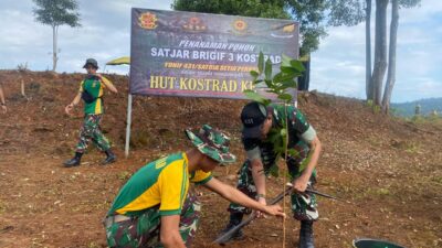 INFOKINI.ID, MAROS– Ratusan bibit pohon jenis mahoni dan jati merah ditanam di wilayah Desa Pucak, Dusun Pucak, Kecamatan Tompobulu, Kabupaten Maros. Penanaman 500 pohon yang dilakukan satuan jajaran (Satjar) Brigif 3/Tri Budi Sakti (TBS), Jumat (16/2/2024) ini, menjadi bentuk kepedulian lingkungan sekaligus dukungan TNI AD terhadap program reboisasi alam. Kegiatan ini menjadi bagian dari rangkaian peringatan HUT Kostrad Ke-63 tahun 2024.