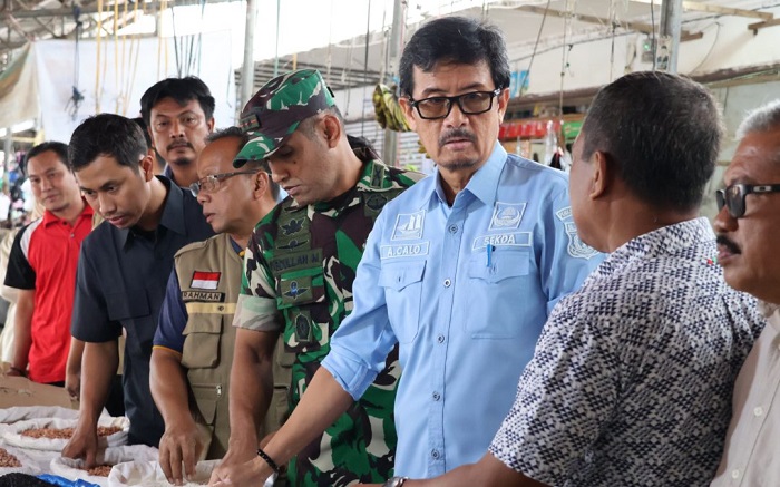 INFOKINI.ID, PINRANG – Sekretaris Daerah Kabupaten Pinrang A Calo Kerrang bersama unsur Forkopimda melakukan operasi pasar di Pasar Sentral Kabupaten Pinrang, Senin (11/3/2024).
