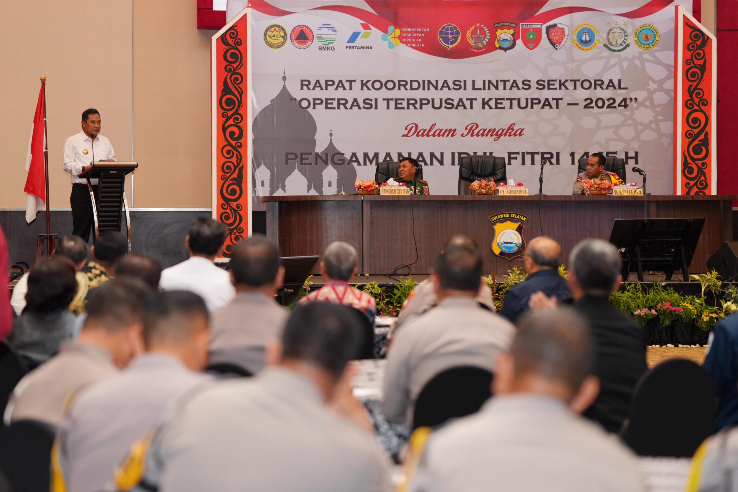 INFOKINI.ID, MAKASSAR– Penjabat Gubernur Sulsel, Bahtiar Baharuddin, memimpin langsung Rapat Koordinasi Lintas Sektoral Operasi Terpusat Ketupat 2024 Dalam Rangka Pengamanan Idul Fitri 1445 H, untuk memastikan arus mudik dan balik Lebaran Idul Fitri berjalan dengan lancar tanpa kendala.