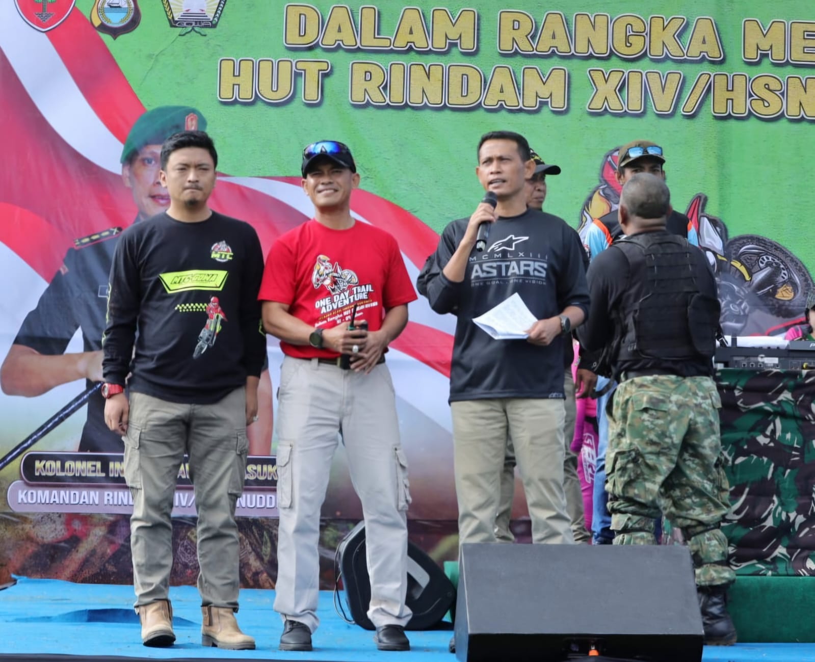 INFOKINI.ID, GOWA – Sebanyak 1.100 riders (pengendara motor) meramaikan gelaran One Day Trail Adventure, Jelajah Alam Tinggimoncong Part 2 di Lapangan Prayudha Secata Rindam XIV/Hasanuddin, Sabtu (8/6/2024). Kegiatan ini digelar dalam rangkaian HUT ke-64 Rindam Hasanuddin.