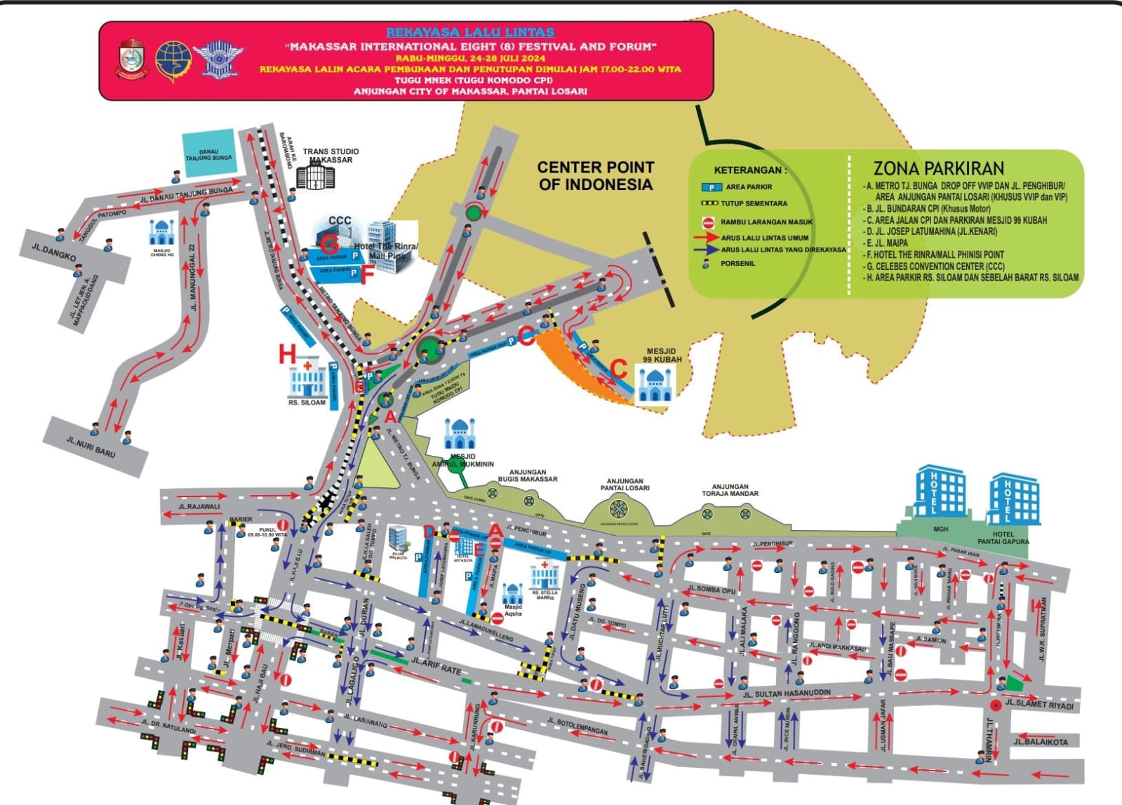 INFOKINI.ID, MAKASSAR – Dinas Perhubungan Kota Makassar telah merencanakan sejumlah langkah rekayasa lalu lintas untuk mengantisipasi lonjakan kendaraan di sekitar Kawasan Monumen MNEK hingga sepanjang Anjungan Pantai Losari. Rekayasa lalin ini dilakukan dalam persiapan menyambut even Makassar F8 yang akan berlangsung pada tanggal 24-28 Juli mendatang,