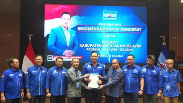 INFOKINI.ID, JAKARTA – Partai Demokrat menyerahkan surat rekomendasi kepada 7 bakal calon kepala daerah (cakada) Sulawesi Selatan yang maju di Pilkada 2024. Surat rekomendasi diserahkan langsung oleh Ketua Umum Partai Demokrat Agus Harimurti Yudhoyono (AHY).