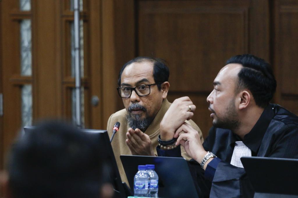 “Dengan uang rupiah atau dengan valas?” cecar hakim.