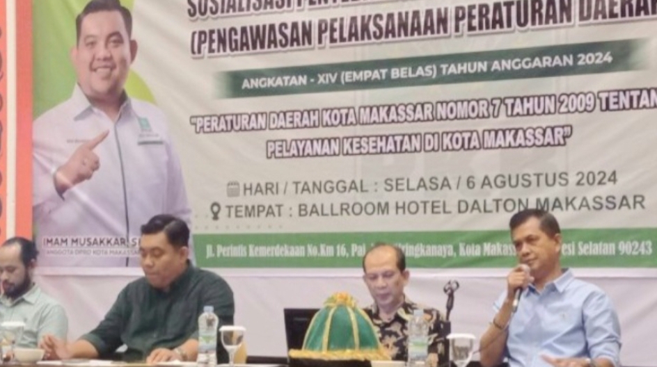 INFOKINI.ID, MAKASSAR – Anggota DPRD Kota Makassar, Imam Musakkar, mengatakan perlu adanya revisi Peraturan Daerah (Perda) Nomor 7 Tahun 2009 tentang Pelayanan Kesehatan. Hal itu disampaikannya saat menggelar Sosialisasi Penyebarluasan Peraturan Daerah (Perda) Nomor 7 Tahun 2009 tentang Pelayanan Kesehatan, di Hotel Dalton, Selasa (6/8/2024).