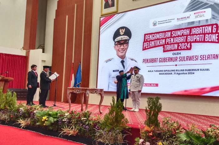 INFOKINI.ID, MAKASSAR – Pj Gubernur Sulsel Zudan Arif Fakrulloh melantik Andi Winarno Eka Putra sebagai Penjabat (Pj) Bupati Bone. Andi Winarno menggantikan Andi Islamuddin yang maju sebagai calon bupati di Pilkada Bone.