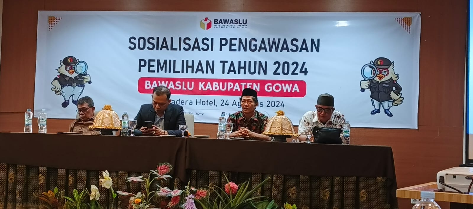 Dalam kegiatan sosialisasi, Bawaslu Gowa menghadirkan dua pemateri yaitu Abdul Karim selaku Ketua Dewas LAPAR Sulsel dan M. Khudri Arsyad selaku Ketua Board Perkumpulan Katalis Indonesia. Sementara peserta sosialisasi terdiri dari unsur civil society yang terdiri dari organisasi masyarakat, OKP, dan media. Hadir pula pengawas kecamatan (Panwascam) se-Kabupaten Gowa.(*)