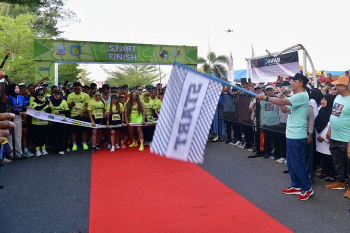 Para peserta dilepas secara resmi oleh Penjabat Gubernur Sulsel, Prof Zudan Arif Fakhrulloh, didampingi Bupati Kepulauan Selayar, Muh Basli Ali, di depan Lapangan Pemuda Benteng, Sabtu, 14 September 2024. Para peserta akan menempuh jarak 7,7 kilometer.