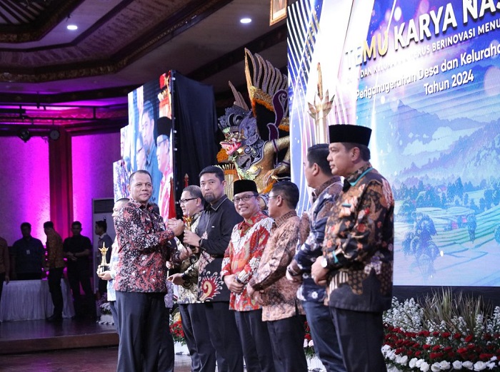 Penghargaan tersebut diserahkan langsung oleh Menteri Dalam Negeri Tito Karnavian bersama Direktur Jenderal Bina Pemerintahan Desa Kemendagri, La Ode Ahmad P. Bolombo, dalam acara Temu Karya dan Penghargaan Lomba Desa/Kelurahan Berprestasi yang berlangsung di Gedung Ksirarnawa, Denpasar, Bali, pada Selasa (8/10/2024).
