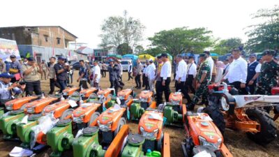INFOKINI.ID, GOWA– Menteri Pertanian RI Andi Amran Sulaiman mengucurkan bantuan kepada masyarakat Gowa dalam kunjungan kerjanya di wilayah Provinsi Sulawesi Selatan. Amran hadir di kecamatan Pattalassang, Jumat (11/10/2024), dan mengucurkan bantuan senilai Rp65,4 miliar. Bersama Kepala Badan Pemelihara Keamanan Polri Komjen Pol Mohammad Fadil Imran, Kepala Staf Umum TNI Letjen TNI Richard Taruli Horja Tampubolon dan jajaran pejabat lingkup Kementan, Amran menyerahkan bantuan puluhan miliar itu dalam bentuk benih serta Alat dan Mesin Pertanian (Alsintan). Amran datang ke Kabupaten Gowa, dalam dua agenda , yaitu kegiatan tanam benih dan panen padi di Dusun Sailong, Desa Sunggumanai, Kecamatan Pattalassang dan penyerahan bantuan di Lapangan Pemuda Pattalassang. Hadir di kesempatan itu, Pj Gubernur Sulsel Zudan Arif Fakhrulloh, Bupati Gowa Adnan Purichta Ichsan, Wabup H Abd Rauf Malaganni, serta jajaran Forkopimda dan pejabat lingkup Kabupaten Gowa.