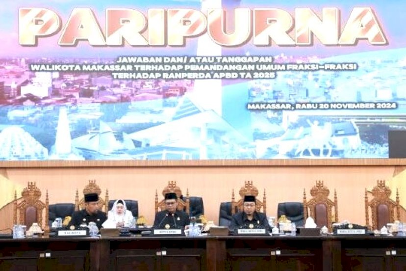 INFOKINI.ID, MAKASSAR– Penjabat Sementara (Pjs) Wali Kota Makassar, Andi Arwin Azis menyampaikan jawaban atas pemandangan umum fraksi-fraksi terkait Rancangan Peraturan Daerah (Ranperda) APBD Tahun Anggaran 2025 pada Rapat Paripurna Kesembilan Masa Persidangan 2024-2025 di DPRD Kota Makassar, Rabu (20/11/2024