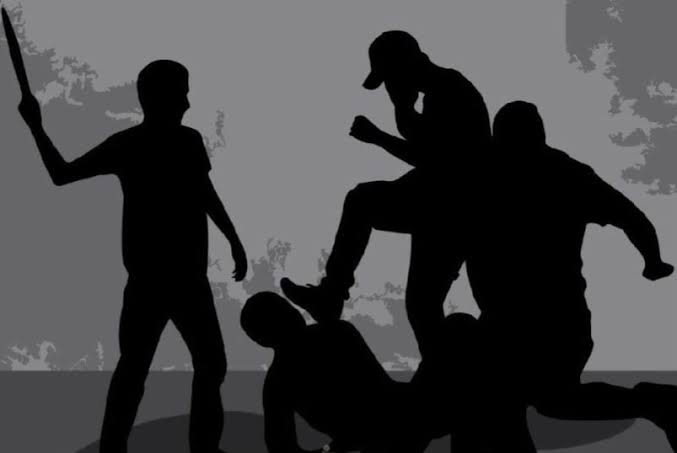 Sementara beberapa pria lainnya menyaksikan aksi kekerasan tersebut. Sejumlah warga juga terlihat berada di lokasi.