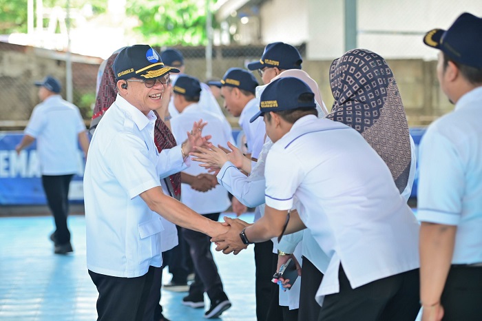 INFOKINI.ID, MAKASSAR – Perumda Air Minum (PDAM) Kota Makassar menggelar apel pagi dirangkaikan dengan acara Halalbihalal Idulfitri 1446 H di halaman Kantor Pusat Perumda Air Minum Kota Makassar, Rabu (9/4/2025). Acara ini dihadiri seluruh direksi dan pegawai Perumda Air Minum Kota Makassar.