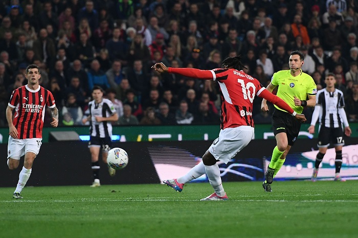 Gol pertama dicetak pada menit ke-42 lewat sepakan first-time Leao dari tepi kotak penalti. Dia melepaskan tendangan melengkung ke pojok jauh dengan kaki kanan, memanfaatkan kerja sama apik dan umpan tarik dari Youssouf Fofana. Skor menjadi 1-0.