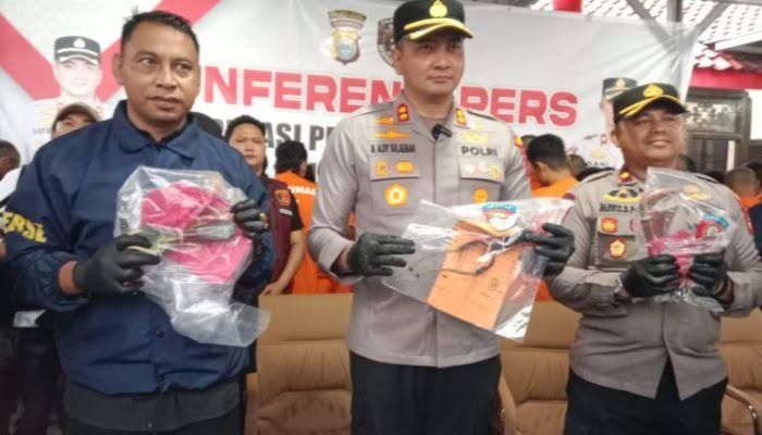Aldy menuturkan barang bukti yang diamankan cukup banyak di antaranya 21 badik atau senjata tajam, 4 ketapel pelontar busur, hingga 8 anak panah. Kemudian 3 bilah parang, 1 samurai, dan 6 unit sepeda motor yang diduga digunakan dalam aksi kejahatan.