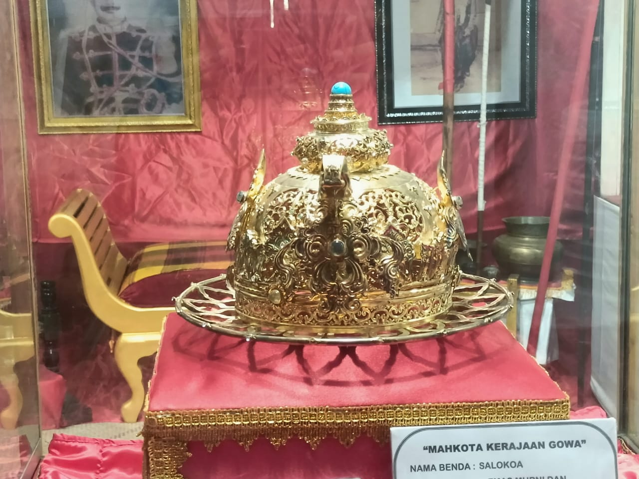 INFOKINI.ID, GOWA– Museum Balla Lompoa menjadi tempat penyimpanan sejumlah koleksi sejarah Kerajaan Gowa. Dari seluruh benda koleksi yang ada, beberapa diantaranya merupakan koleksi andalan yang menjadi saksi megahnya Kerajaan Gowa. Salah satu diantaranya adalah Mahkota Salokoa, yang juga menjadi simbol kekuasaan dan warisan budaya Kerajaan Gowa yang sangat penting.