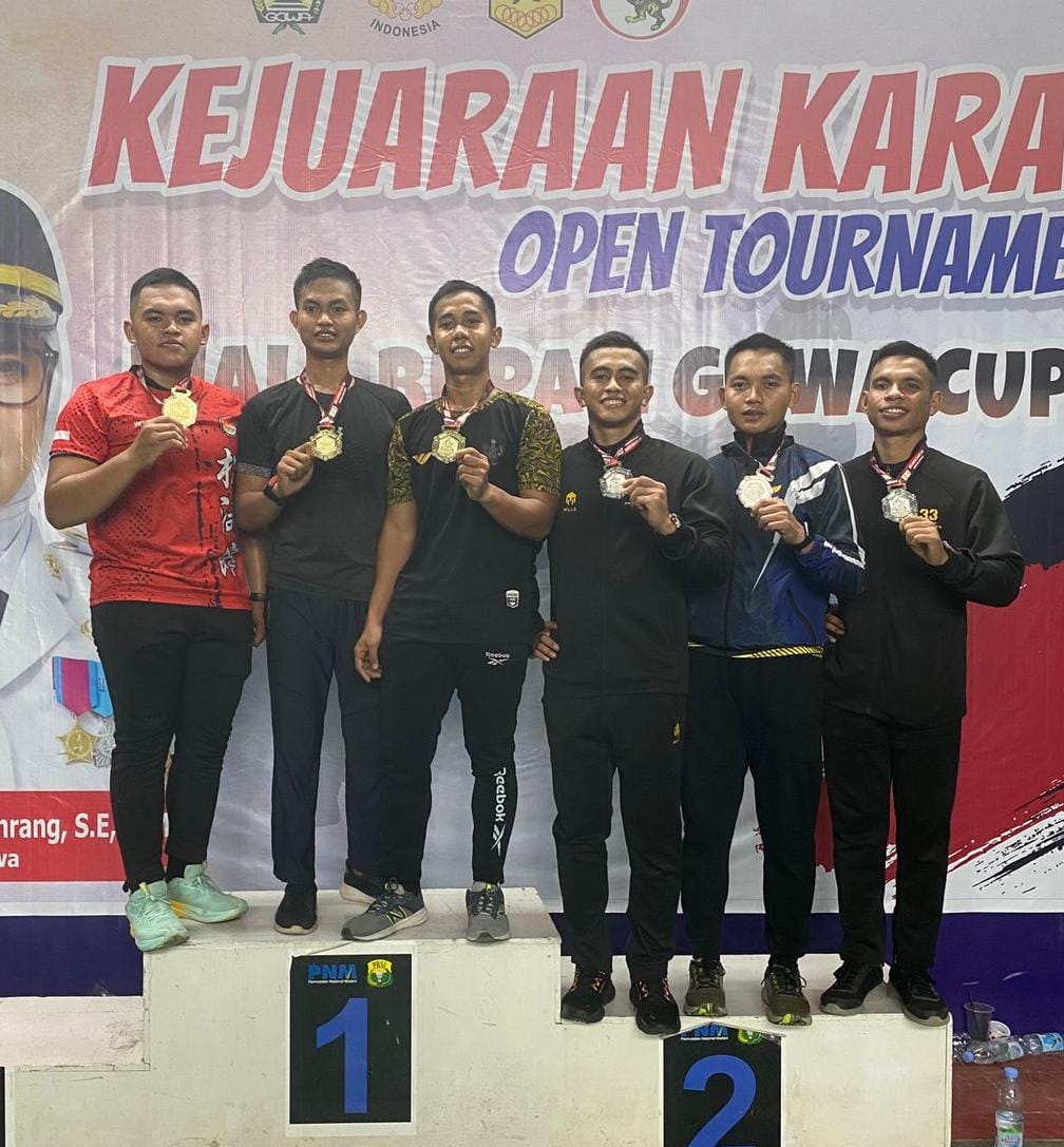 INFOKINI.ID, GOWA– Atlet Karate Kodam XIV/Hasanuddin kembali mengikuti prestasi di bidang olahraga. Tiga jenis medali, yaitu emas, perak dan perunggu disapu bersih oleh atlet dari Kodam XIV/Hsn yang berjuluk Ayam Jantan Dari Timur ini. 10 medali masing-masing tiga medali emas, empat perak dan empat medali perunggu dikantongi para atlet yang berlaga di Kejuaraan Karate Open Tournament Piala Bupati Gowa Tahun 2025, di GOR Bulutangkis Dg. Bo’lo, Jalan Tumanurung Raya, Kelurahan Kalegowa, Kecamatan Somba Opu, Kabupaten Gowa, Sabtu, (02/08/2025). Medali tersebut diraih dari berbagai kategori pertandingan yang diikuti.