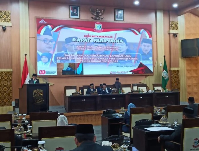 INFOKINI.ID, MAKASSAR – DPRD Kota Makassar menggelar rapat paripurna pada Jumat (15/8/2025) di Gedung DPRD Makassar, Jalan AP Pettarani. Agenda utama rapat adalah penyampaian laporan hasil pelaksanaan reses ketiga masa persidangan ketiga tahun sidang 2024–2025.