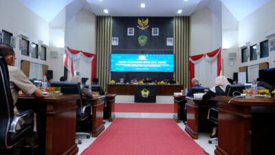 INFOKINI.ID, GOWA– Tujuh fraksi yang ada di DPRD Kabupaten Gowa menyetujui pembahasan lanjut atas Rancangan Peraturan Daerah (Ranperda) tentang Perubahan APBD Kabupaten Gowa tahun 2025. Rapat paripurna pandangan fraksi atas nota keuangan dan ranperda tersebut, digelar Selasa (26/8/2025) malam dan dibuka Wakil Ketua DPRD Gowa yang merupakan legislator dari Partai Gerindra Hasrul Abdul Rajab. Rapat paripurna dilaksnakan usai Bupati Gowa Hj Sitti Husniah Talenrang menyerahkan nota keuangan dan ranperda pada pagi hari.  Hadir mendampingi Bupati Gowa, Sekda Kabupaten Gowa, Andi Azis Piter.