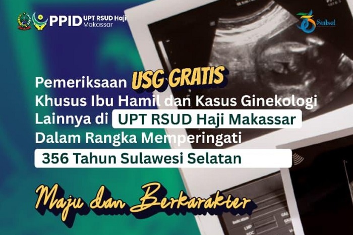 Pelayanan USG gratis ini dibuka untuk maksimal 10 pasien, dengan pendaftaran melalui Bidan Erni di nomor 0823-4993-0903. Pemeriksaan dilakukan langsung oleh tenaga medis berpengalaman di Poli Kebidanan dan Kandungan (Obgyn) RSUD Haji Makassar.