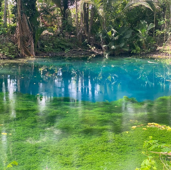 Telaga Biru memang menawarkan pemandangan yang langka. Airnya yang memancarkan warna kebiruan yang memukau dikelilingi oleh rimbunnya pepohonan besar, menciptakan suasana damai dan sejuk.