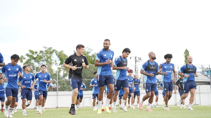 Kapten PSM, Yuran Fernandes, saat menjalani latihan bersama rekan-rekannya. PSM akan menghadapi Dewa United di Banten Internasional Stadium, Minggu (9/11) sore. (dok. ileague)