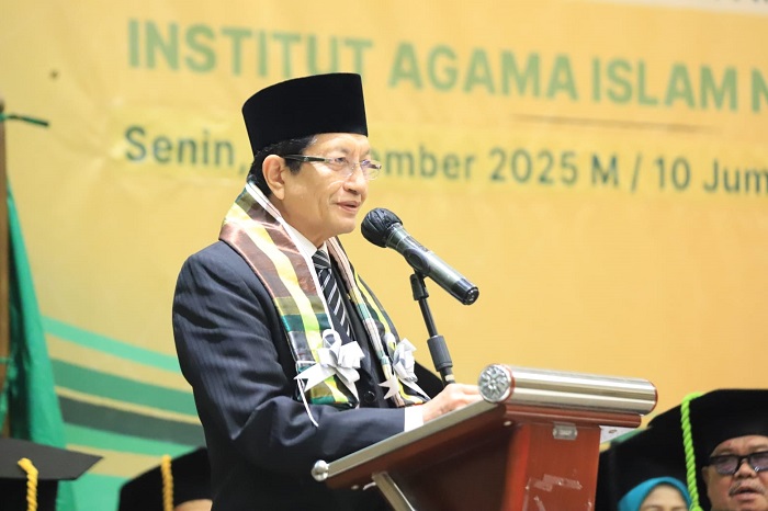 Menag menyampaikan pesan tentang pengembangan perguruan tinggi keagamaan Islam, penguatan jati diri kebonean, hingga tanggung jawab akademik dan moral para lulusan.