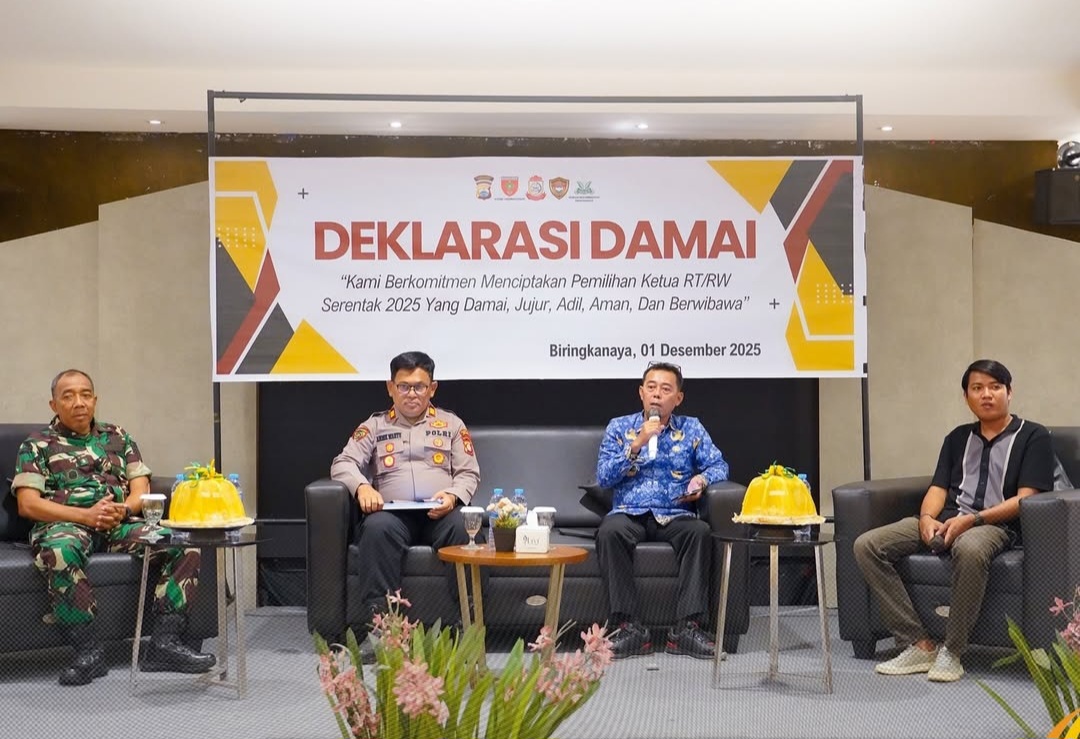 INFOKINI.ID, MAKASSAR — Tripika Kecamatan Biringkanaya resmi menggelar Deklarasi Damai sebagai bentuk komitmen bersama untuk menciptakan pelaksanaan pemilihan Ketua RT/RW serentak yang damai, jujur, adil, aman, dan berwibawa.