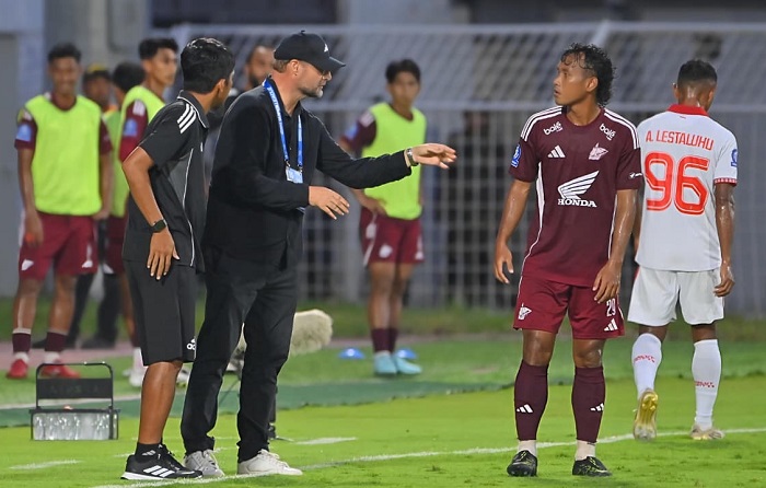 Pelatih PSM Makassar, Tomas Trucha, saat memberikan instruksi kepada pemainnya saat laga di BRI Super League 2025/26. (dok. ileague)