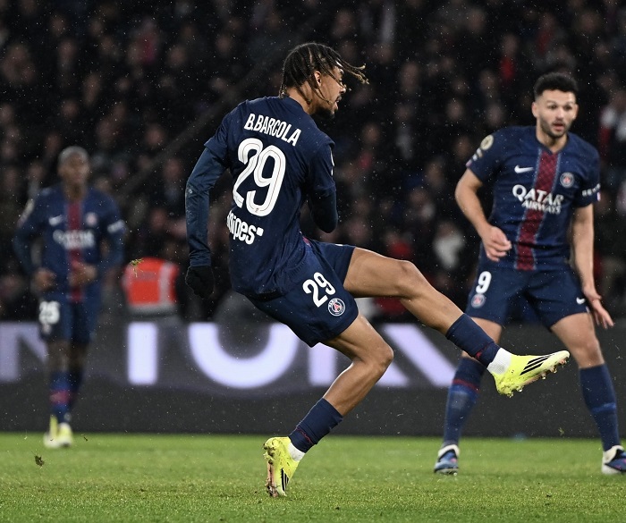 Bradley Barcola menambah keunggulan PSG menjadi 3-0 pada masa injury time.