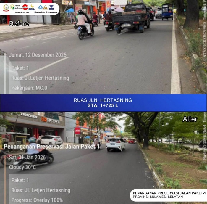 INFOKINI.ID, MAKASSAR – Progres penanganan preservasi Jalan Paket 1 melalui skema Multiyears Project (MYP), khususnya pada ruas Jalan Hertasning di Kota Makassar dan ruas Burung-Burung–Bili-Bili di Kabupaten Gowa, menunjukkan perkembangan signifikan dan mulai dirasakan manfaatnya oleh masyarakat.