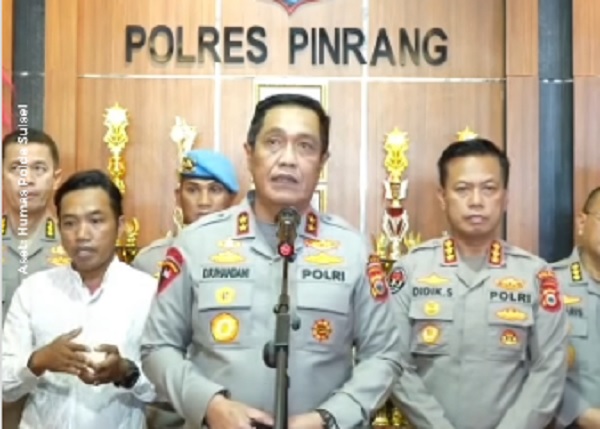 “Kurang dari 24 jam kita menetapkan satu tersangka,” kata Kapolda Sulawesi Selatan, Irjen (Pol) Djuhandhani Rahardjo Puro, saat menggelar konferensi pers di Mapolres Pinrang, Senin (23/2/2026).