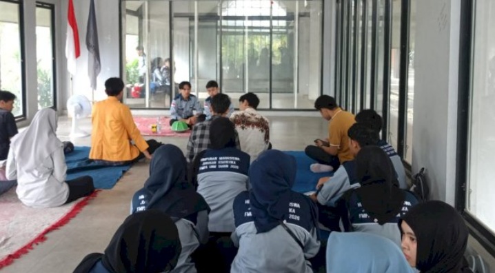 Puluhan mahasiswa dari HMJ Statistik FMIPA UNM tersebut belajar topik manajemen waktu di Gedung Kaca, Istana Tamalate Balla Lompoa.