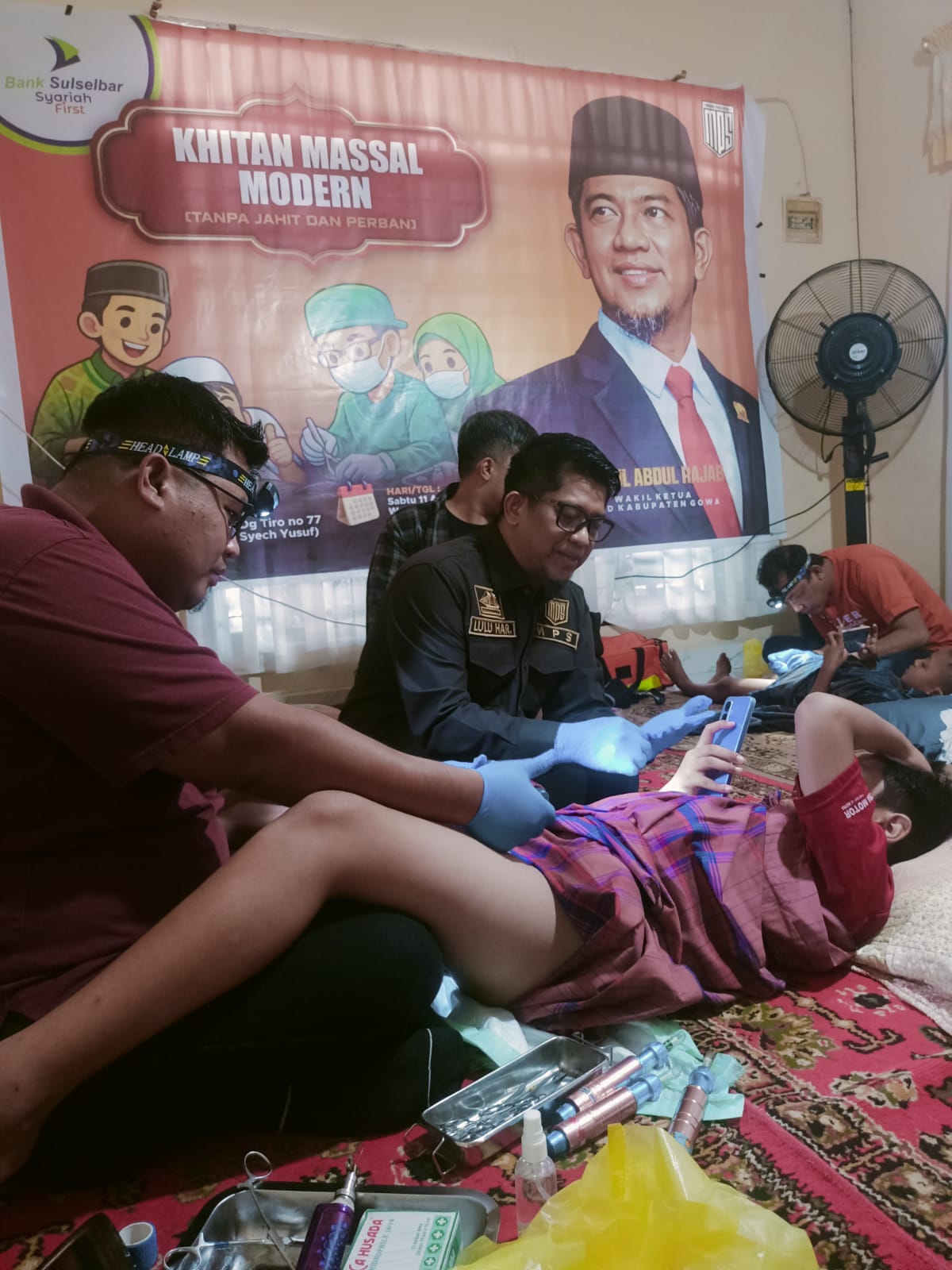 INFOKINI.ID, GOWA– Millenial Peduli Sulsel (MPS) kembali menggandeng Bank Sulselbar untuk aksi sosial. Program khitanan massal metode lem senilai ratusan juta rupiah digelontorkan gratis untuk 50 anak dari keluarga prasejahtera, Sabtu (11/4/2026) di Jalan Dg Gassing, Kelurahan BatangKaluku, Kecamatan Sombaopu, Kabupaten Gowa.