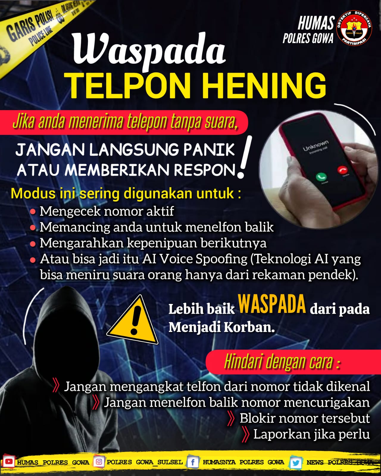 INFOKINI.ID, GOWA – Polres Gowa mengimbau masyarakat untuk meningkatkan kewaspadaan terhadap modus penipuan baru melalui telepon yang dikenal dengan istilah telepon hening, Senin (13/4/2026).