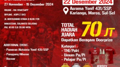 INFOKINI.ID, MAKASSAR – Batalyon 431/SSP Kariango, Maros menggelar lomba lari bertajuk Run Like Paratroopers Satria…